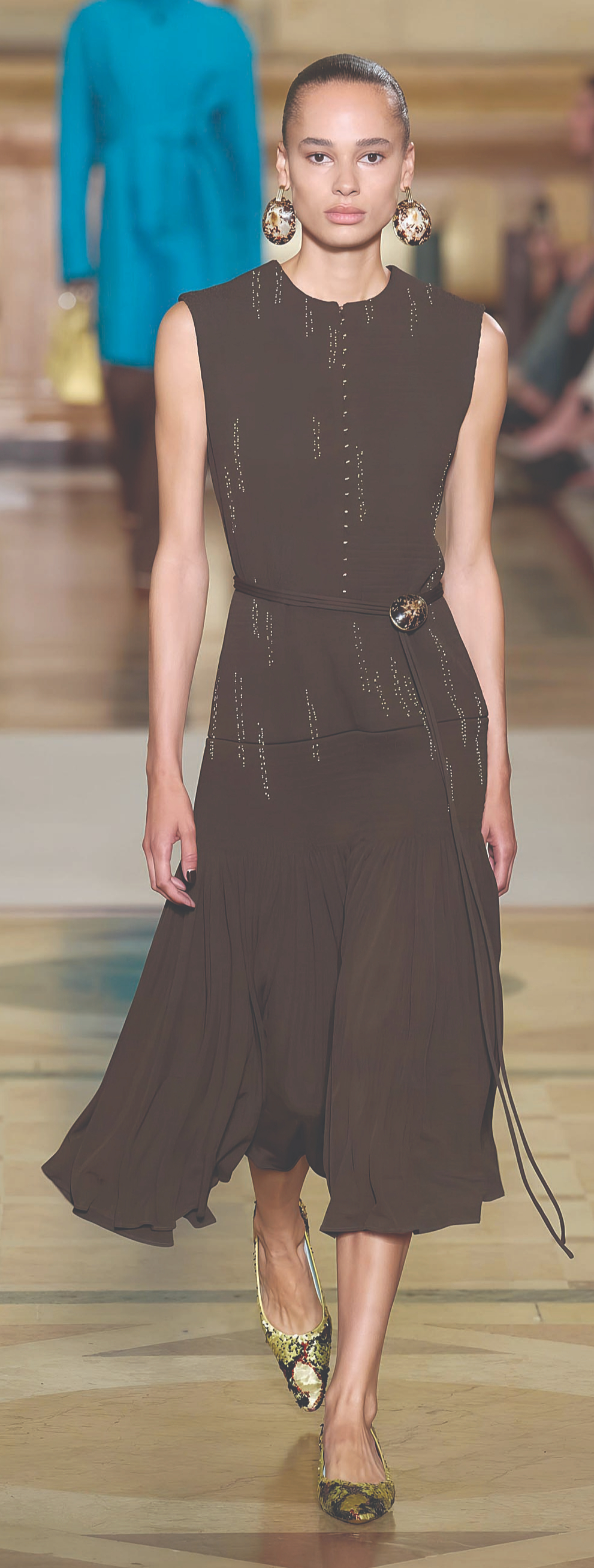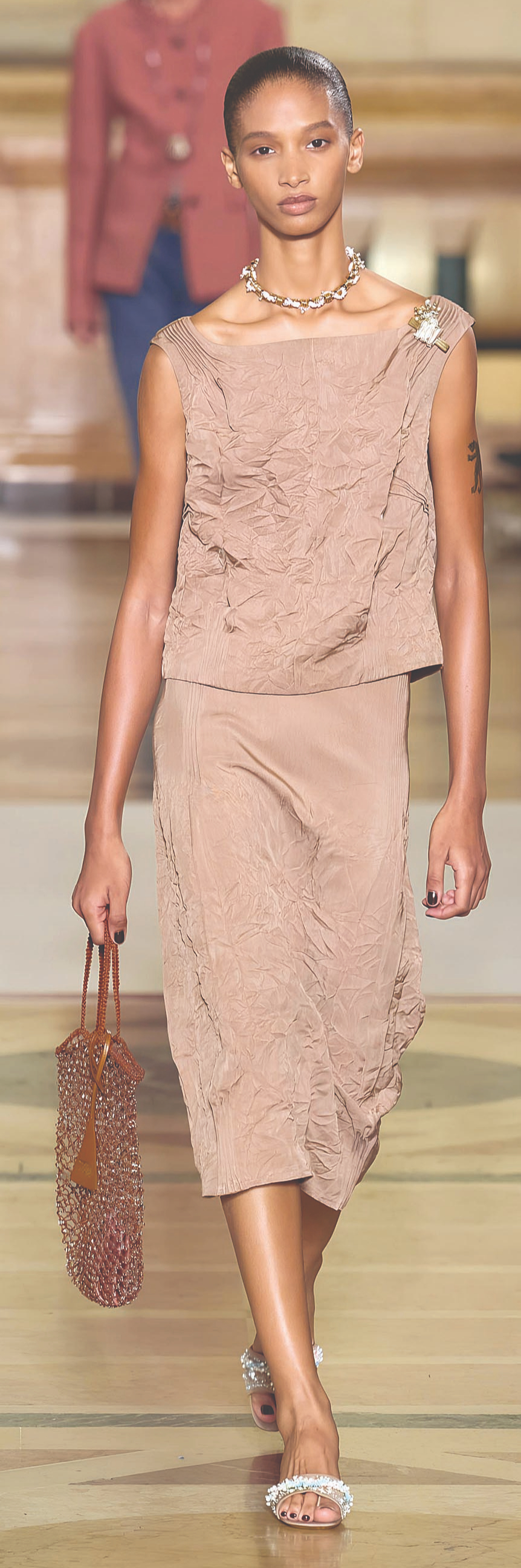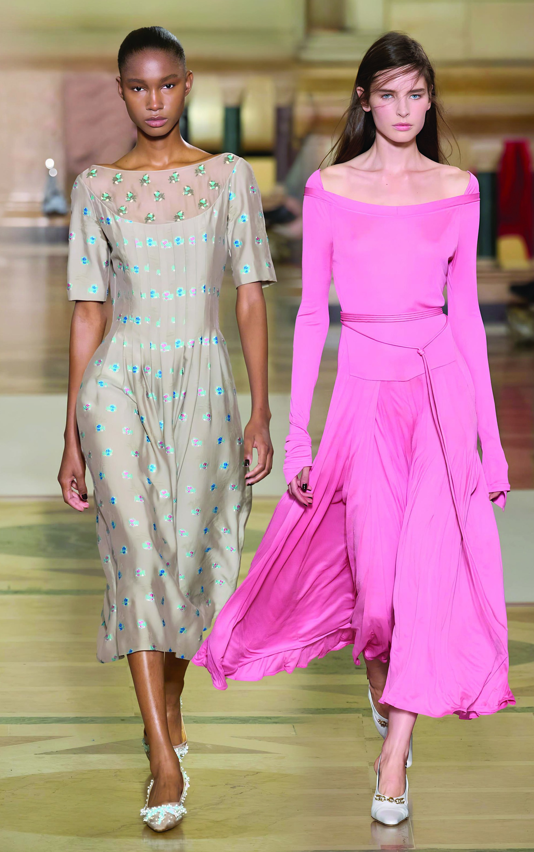 Nếu nhiều thương hiệu chọn sự tinh giản và sắc trắng để mở màn như một cách tìm đến sự an toàn và thuần khiết, Tory Burch lại quyết định khác đi. Nhà mốt đưa lên sàn diễn những gam màu đa dạng, những chi tiết sáng tạo và sự tinh nghịch trong thiết kế. Đây là bước tiến tiếp nối hành trình định hình lại thương hiệu từ sau đại dịch, khi Tory Burch dần rời xa phong cách preppy đặc trưng để hướng đến hình ảnh hiện đại và cá tính hơn.