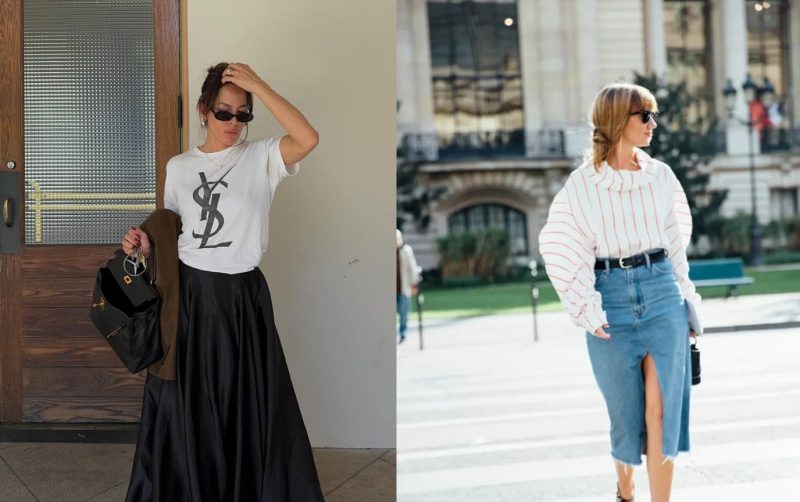 Chân váy midi, chân váy cargo và váy denim dài đều là những item quen..