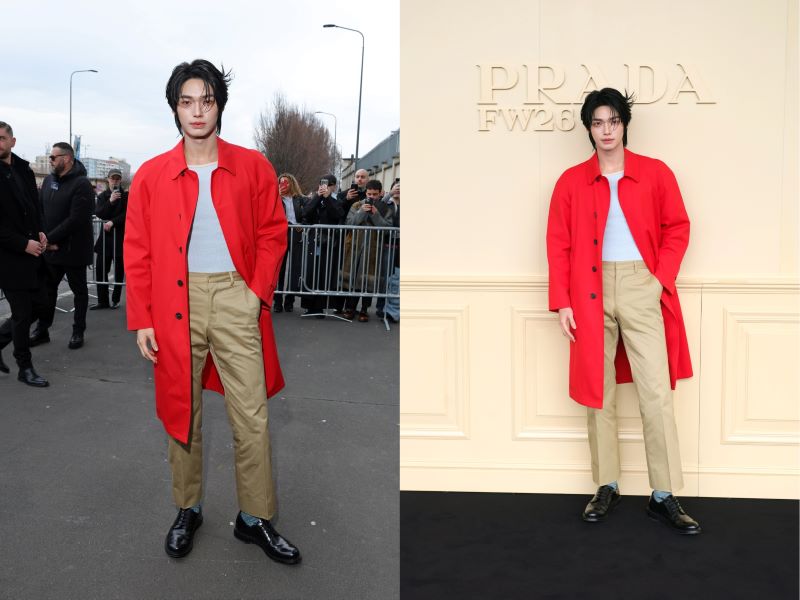 Karina tiếp tục khẳng định vị thế gương mặt đại diện thế hệ mới của Prada trong lần xuất hiện tại Tuần lễ Thời trang Milan 2026. Nữ thần tượng lựa chọn thiết kế mang tinh thần cổ điển đương đại: phom dáng gọn, bảng màu trung tính, cấu trúc tối giản đúng với ngôn ngữ thiết kế quen thuộc của nhà mốt Ý.Trong khuôn khổ Tuần lễ Thời trang Nam Milan, Byeon Woo Seok góp mặt tại show diễn Prada với hình ảnh gắn liền cùng tinh thần thanh lịch tối giản. Nam diễn viên Hàn Quốc lựa chọn áo dệt kim hồng phấn, họa tiết đan thừng chạy dọc thân áo, một chi tiết mềm mại hóa cấu trúc trang phục nam giới.Gawon, thành viên nhóm nhạc nữ MEOVV góp mặt tại show Prada trong khuôn khổ Tuần lễ Thời trang Milan. Nữ thần tượng lựa chọn trang phục từ bộ sưu tập Prada Xuân Hè 2026, đánh dấu lần đầu xuất hiện tại Milan trong vai trò đại sứ thương hiệu. Trang phục được xây dựng trên nguyên lý tương phản: áo len xám cổ V xẻ sâu kết hợp bralette đỏ, đi cùng chân váy ren xuyên thấu và quần ngắn được đặt cạnh nhau.Là đại sứ Prada đến từ Thái Lan, Win Metawin mang đến một lát cắt hình ảnh khác tại Milan 2026. Chiếc áo măng tô sắc đỏ nổi bật kết hợp áo tank top xám và quần khaki nâu be tạo nên cấu trúc trang phục giàu tương phản.Hứa Quang Hán tiếp tục là gương mặt thu hút sự quan tâm của giới truyền thông trên hàng ghế đầu của Prada. Nam diễn viên lựa chọn hướng phối màu color block, mang đến một lát cắt khác cho menswear truyền thống. Bộ trang phục được xây dựng trên cấu trúc tương phản: quần đen và áo khoác xanh đen làm nền, trong khi lớp áo len xanh lá bên trong trở thành điểm nhấn thị giác. Cách xử lý màu sắc này phá vỡ bảng màu an toàn thường thấy, đồng thời phản ánh tinh thần trẻ trung và linh hoạt trong ngôn ngữ thiết kế của Prada những mùa gần đây.Xuất hiện tại show Dolce & Gabbana Thu Đông 2026, Jung Hae In lựa chọn hình ảnh bám sát tinh thần may đo Ý. Bộ suit tông trắng, phom dáng cổ điển, kết hợp áo sơ mi cùng phụ kiện tiết chế, đặt trọng tâm vào đường cắt và cấu trúc trang phục tạo nên diện mạo gần với hình mẫu quý ông truyền thống.Lần đầu góp mặt tại Tuần lễ Thời trang Milan, Mark Lee được Ralph Lauren lựa chọn cho show Thu Đông 2026 với hình ảnh bám sát tinh thần quý ông đương đại. Nam thần tượng với bộ suit may đo chuẩn xác, áo khoác hai hàng khuy, cà vạt cổ điển và giày da tối giản.Trần Vỹ Đình để lại dấu ấn mạnh mẽ khi đảm nhận vai trò catwalk kết màn show Zegna Thu Đông 2026. Xuất hiện trong thiết kế mang tinh thần cổ điển, nam diễn viên thể hiện sự am hiểu ngôn ngữ thời trang Ý thông qua dáng đi, thần thái và khả năng làm chủ trang phục. Sự kiện này cũng đánh dấu sự xuất hiện của Trần Vỹ Đình với danh hiệu đại sứ toàn cầu của Zegna.Nam diễn viên Lee Byung Hun xuất hiện tại Milan 2026 trong bộ suit xám của Zegna, lựa chọn tưởng chừng đơn giản nhưng đặt trọng tâm vào kỹ thuật may đo. Phom dáng chuẩn, chất liệu cao cấp và cách xử lý bề mặt vải tạo nên hình ảnh nam tính trưởng thành.Diễn viên người Thái Bible Wichapas xuất hiện tại Tuần lễ Thời trang Milan trong khuôn khổ show Giorgio Armani với lựa chọn trang phục khác biệt so với hình ảnh suit kinh điển của nhà mốt. Áo khoác mỏng họa tiết hình học kết hợp quần ống rộng đặt trọng tâm vào cảm giác chuyển động và phom dáng phóng khoáng. Cách xử lý chất liệu và cấu trúc này mở ra một hướng diễn giải linh hoạt cho menswear Armani, đồng thời cho thấy sự tương thích giữa phong thái cá nhân của Bible Wichapas và ngôn ngữ thẩm mỹ của thương hiệu.